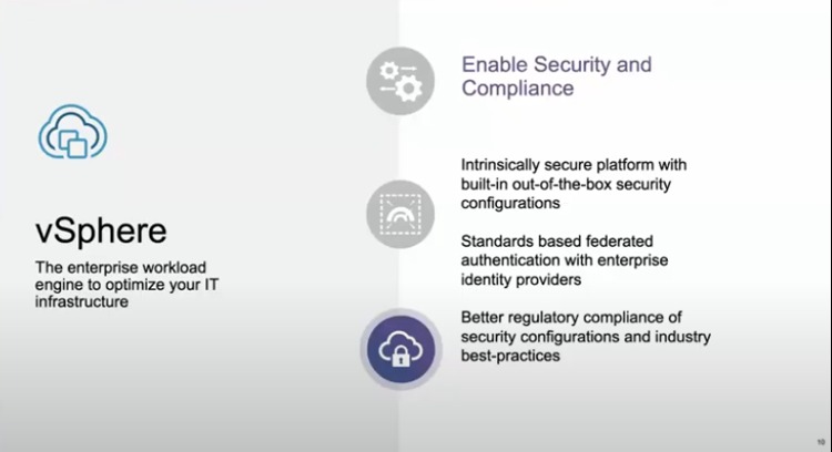 vSphere offers combined authentication support, built-in security configurations, as well as the ability to better meet industry regulatory standards.