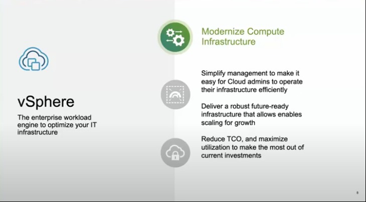 VMware vSphere provides operational efficiency for cloud administrators, which makes it easier to manage infrastructure, and can reduce TCO (Total Cost of Ownership).