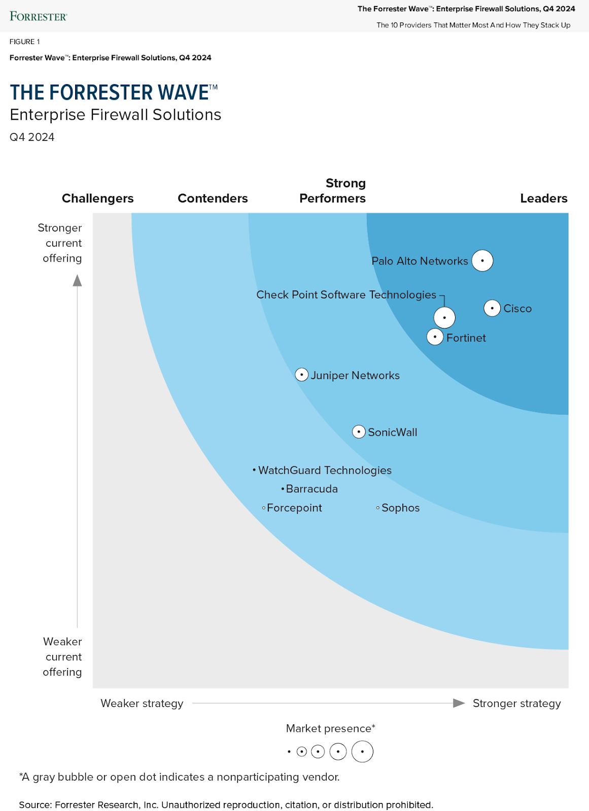 Palo Alto Networks has been named a Leader in enterprise firewalls, achieving the highest score in the Current Offering category in The Forrester Wave™: Enterprise Firewall Solutions, Q4 2024.